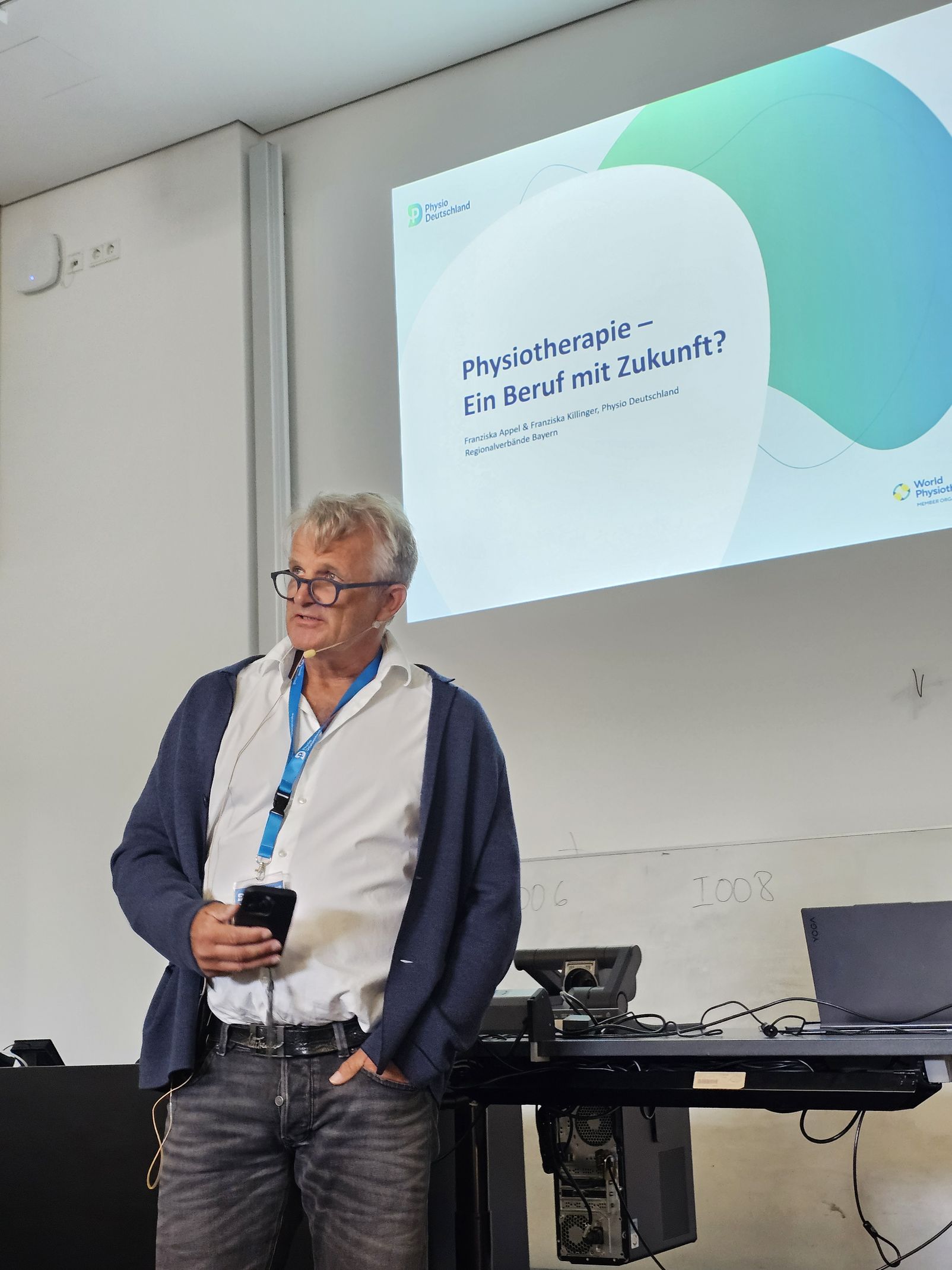 Eingeleitet worden war dieser ereignisreiche Tag vom Dekan der TH Deggendorf, Prof. Dr. Christian Rester, der die Bedeutung des reflektierten Wissens für die Patientenversorgung hervorhob und Physio Deutschland dafür dankte, dass sich der Verband für die Akademisierung der Ausbildung stark macht. Die anschließenden Fachvorträge bestritten u. a. die Vorstände des RV Bayern Markus Norys, Yvette van Remmen und Miriam Schwarzlmüller. Stark vertreten an diesem Tag waren auch die Junioren des RV Bayern, die nicht nur im Begrüßungsvortrag zur Zukunft der Physiotherapie ihre eigene Perspektive einbrachten, sondern auch in den Pausen sehr gerne und ausführlich für alle Fragen und Anliegen der Schüler*innen und Studierenden zur Verfügung standen. Der Tag endete mit dem Vortrag von Dennis Wittkopf, der als Physiotherapeut die Damenmannschaft des Deutschen Skiverbands betreut und einen spannenden und unterhaltsamen Einblick hinter die Kulissen seiner Arbeit bot.